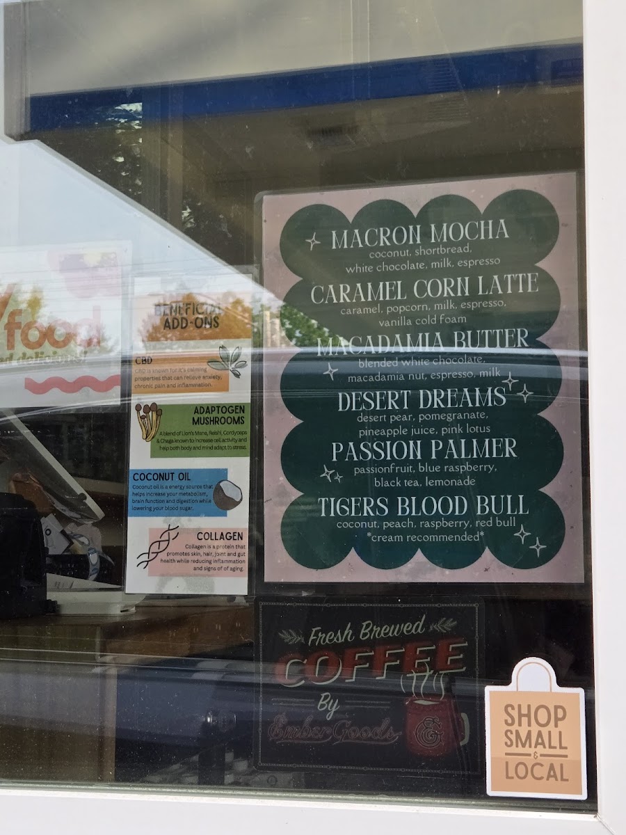 In addition to coffee, the menu includes a variety of teas and creative lattes, each designed to complement the cozy, easygoing atmosphere of the stand. Whether you’re stopping by on your way to work or settling in for a quiet moment, the customizable add-ins—ranging from coconut oil and collagen to cold foam and alternative milks—offer a way to tailor each cup just the way you like it.