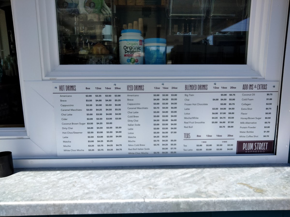 Plum Street Espresso Menu